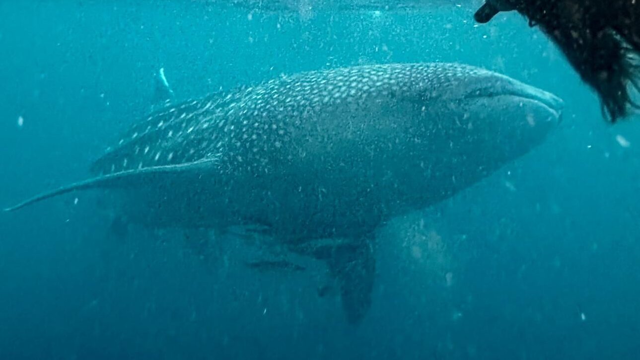 Il y avait 2-3 requins baleine autour de nous, nous avons pu nous mettre à l’eau et les observer sans sembler les gêner.