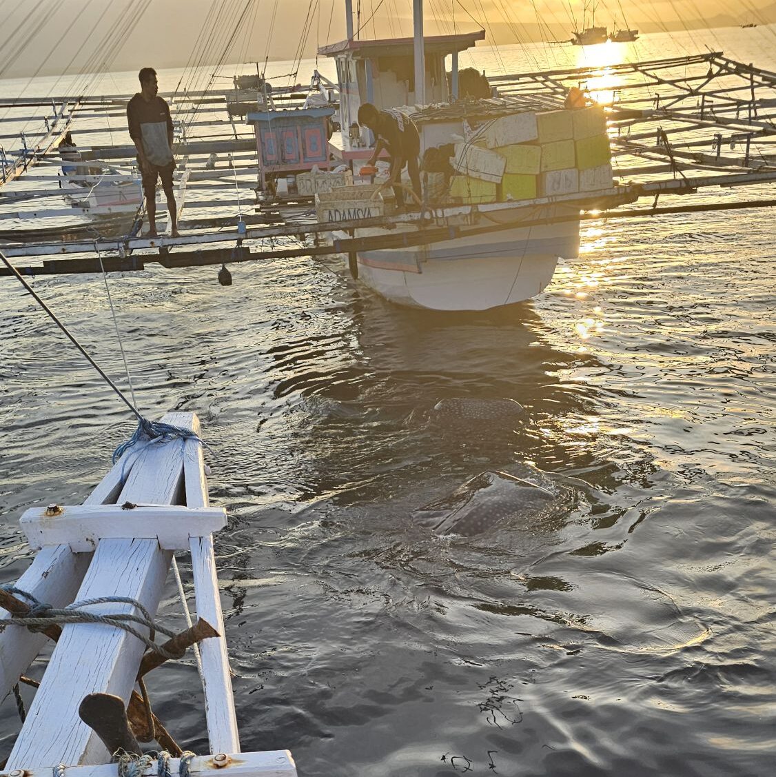 Les requins baleines, ayant compris que c’était un buffet gratuit, se retrouvent dans cette zone et il est donc possible de les observer.