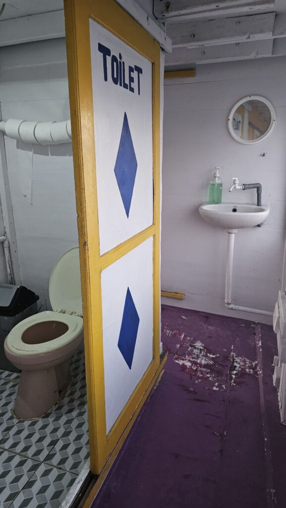 Sur le moment, avec mon ami Tom, on s’est dit qu’on avait même pas eu d’excercice de sécurité (où sont les gilets de sauvetage ? Où se regrouper en cas de forte houle ? Que faire si on se sent mal ?).