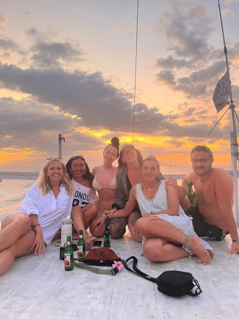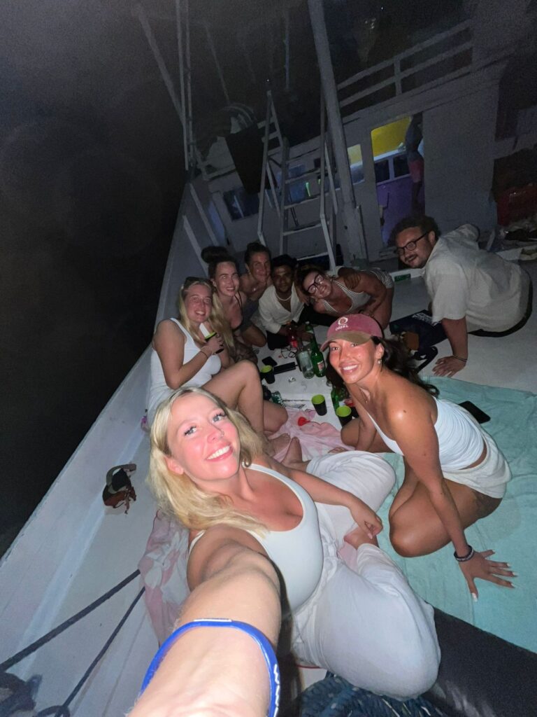 Les gens sur notre bateau étaient pas les plus fun de la terre (encore une fois, il s’agit d’une histoire de personne), heureusement qu’il y avait 4 anglaises, Chloé, Mia, Anna et Elena, avec qui, mon pote Tom et moi avont passé la majorité de notre temps, et qu’est-ce qu’on a rigolé !