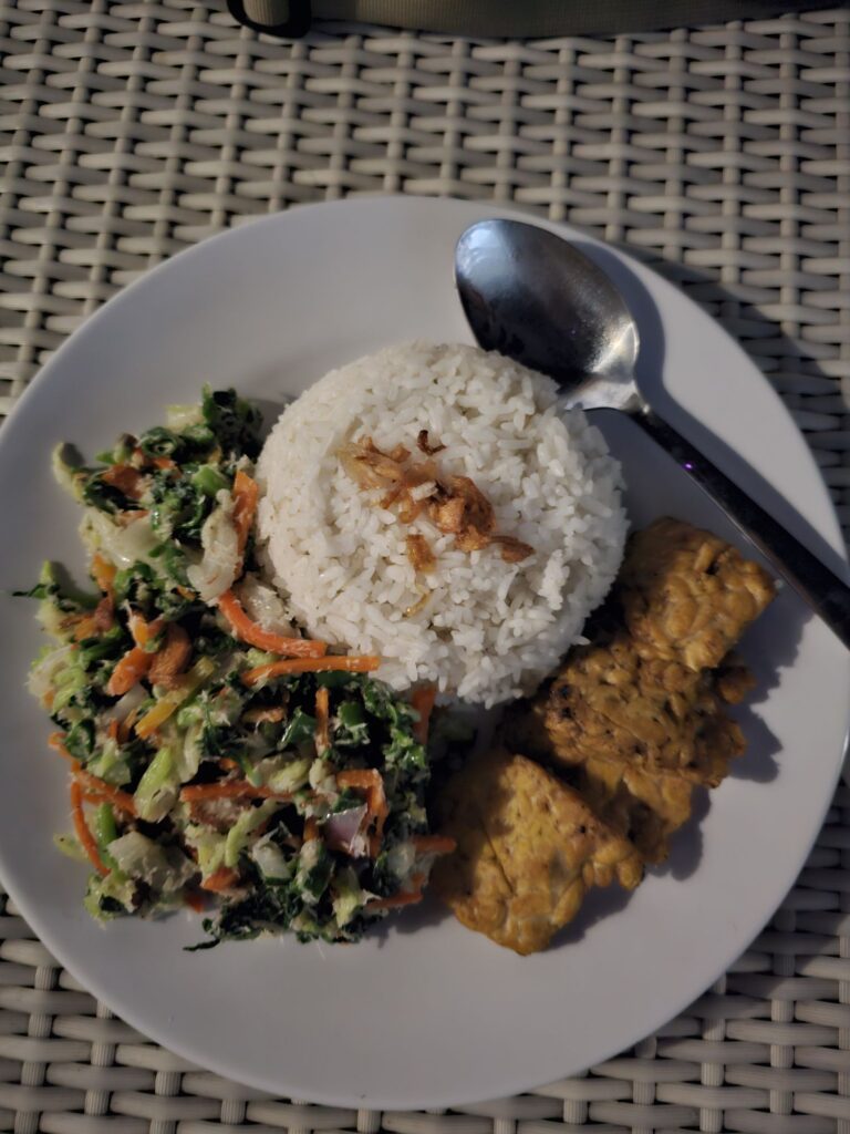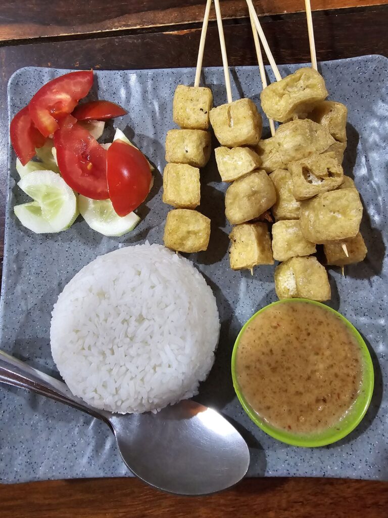 Je suis végétarienne et l’Indonésie est un paradis ! Tofu, haricots, légumes, fruits, cacahuètes, noix de coco ! Tout ce qu’il faut pour une nourriture équilibrée !