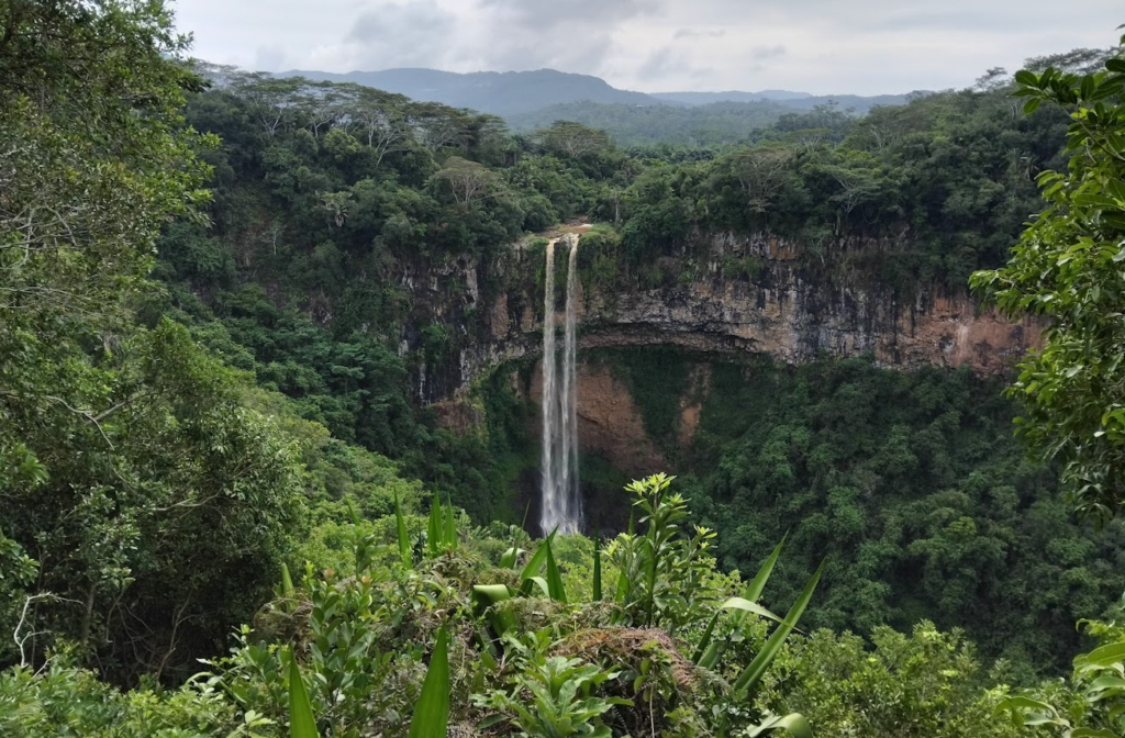 Sur le chemin de la forêt d’Ebony et des montagnes aux 7 couleurs, on fait un stop à la cascade de Chamarel, magnifique ! Il s’agit de la plus haute chute d’eau de l’île Maurice.