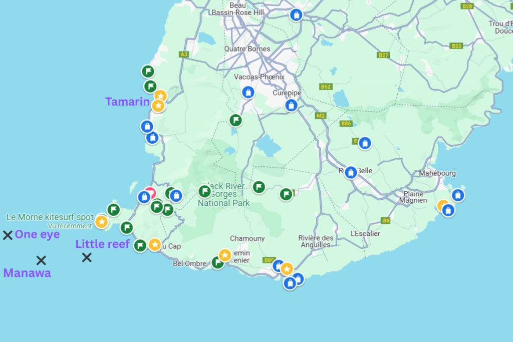 J’ai choisi cette localisation car je voulais être proche du lagon et du spot de surf du Morne (10min en voiture) mais aussi de celui de Tamarin (15 min). Je n’ai pas regretté mon choix : l’emplacement est parfait, c’est un des plus beaux coins de l’île : un environnement calme proche des incontournables du coin.