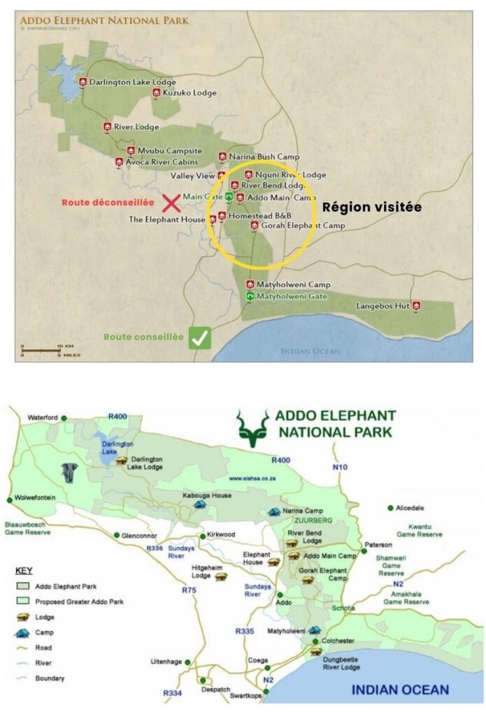 Situé à proximité de Port Elizabeth (aéroport du coin), Addo Elephant est le 3ème plus grand parc national d’Afrique du Sud.