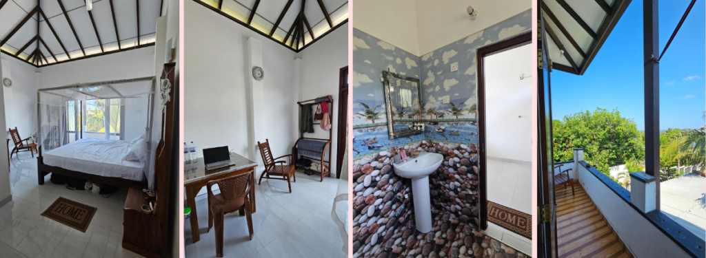 C’est très spacieux, extrêmement propre, le wifi marche bien et le propriétaire, Lakmal, un véritable amour toujours aux petits soins.