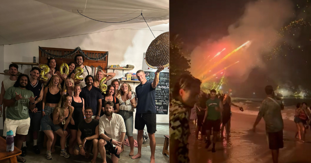 Mais l’ambiance sur la plage était incroyable (et gratuite) avec de la musique, des feux d’artifices dans tous les sens et tout le monde qui a finit en bain de minuit.